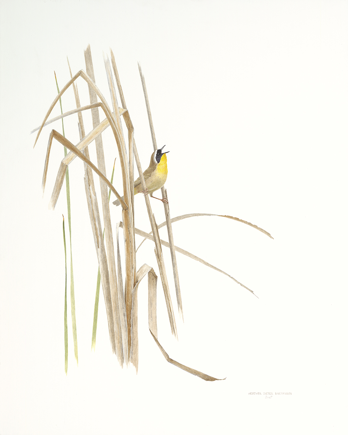 It was at North Shields Pond here in Fort Collins that I spotted this little jewel. The clear voice of the Yellowthroat gave away his location, easily heard above the springtime din of Red-winged Blackbirds…. “Witchity-witchity-witchity”. His brilliant yellow and black were a nice highlight on the otherwise neutral backdrop of cattails.